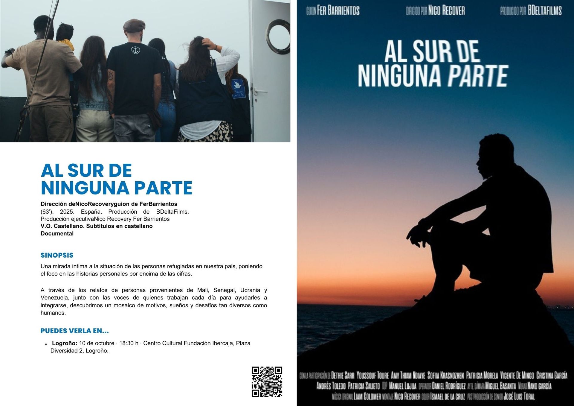 -19,00 h. Proyección de la película "Al sur de ninguna parte". Un documental que nos ofrece una mirada íntima a la situación de las personas refugiadas en España, poniendo el foco en las historias personales por encima de las cifras. A través de los relatos de personas provenientes de Mali, Senegal, Ucrania y Venezuela, junto con las voces de quienes trabajan cada día para ayudarles a integrarse, descubrimos un mosaico de motivos, sueños y desafíos tan diversos como humanos.